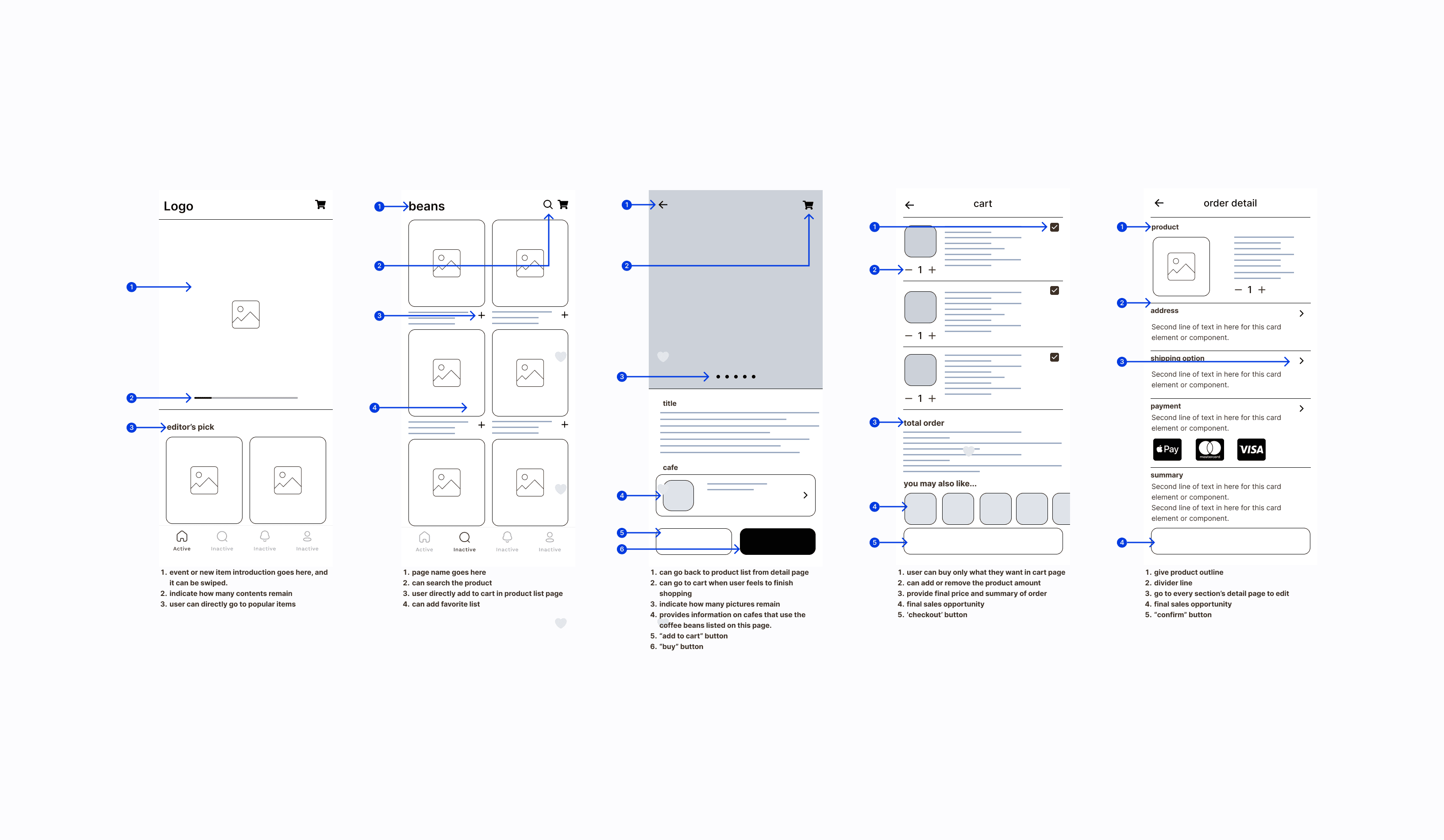 Information Hierarchy: Brand name → Product name(large) → Bean taste → Price