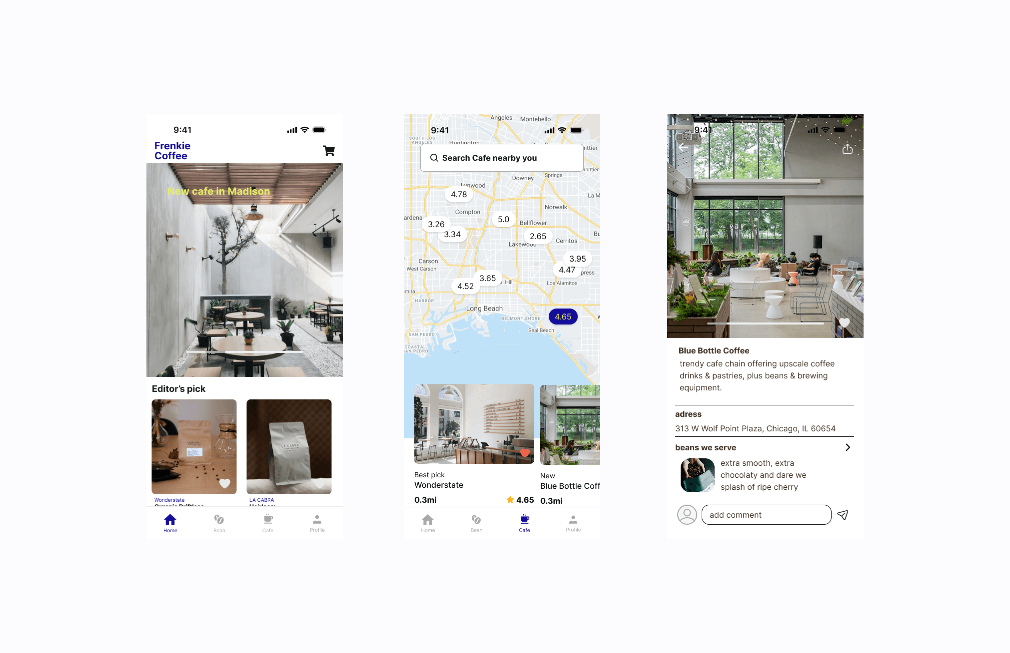 Users can read and share experiences about cafes and beans.